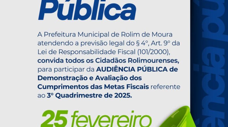 Read MoreCONVITE A Prefeitura Municipal de Rolim de Moura atendendo a previsãolegal do § 4°, Art. 9° da Lei de Responsabilidade