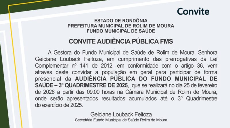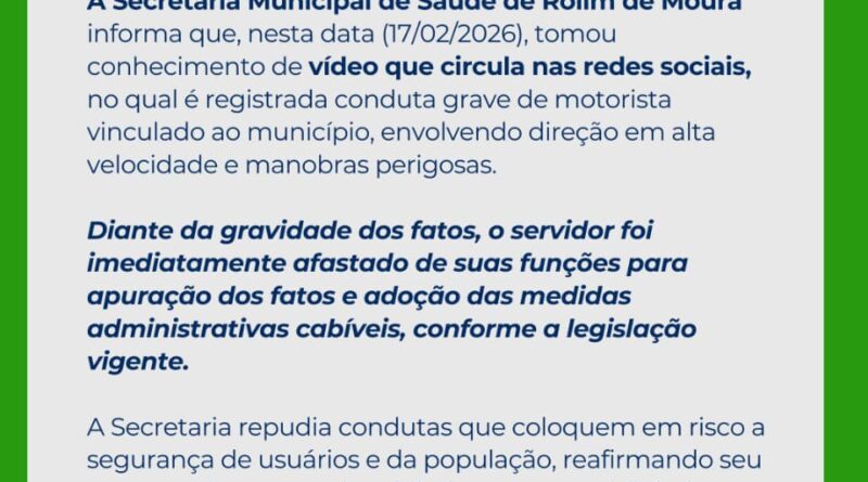 Read MoreNOTA DE ESCLARECIMENTO A Secretaria Municipal de Saúde de Rolim de Moura informa que, nesta data (17/02/2026), tomou conhecimento de