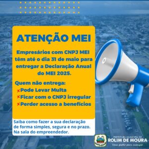 Em Rolim de Moura, os MEIs que tiverem dúvidas ou precisarem de auxílio para preencher a declaração podem contar com o apoio da Sala do Empreendedor, localizada na Prefeitura. O atendimento é gratuito e tem como objetivo facilitar o cumprimento das obrigações fiscais por parte dos pequenos empresários.