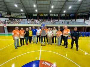 A noite também foi marcada por emoção e memória. A família Schelbauer foi homenageada em tributo a Émerson Schelbauer, jovem que dá nome ao ginásio e que perdeu a vida tragicamente em um acidente de trânsito em Rolim de Moura. O pai, Hidelbrando, e os irmãos, Flávio e Michele, estiveram presentes e receberam a homenagem da Autarquia Municipal de Esportes com carinho e reconhecimento.
