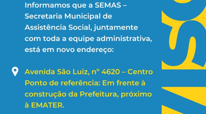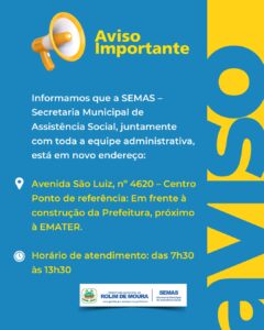 SEMAS Sede administrativa da SEMAS está em novo endereço imprensa Rolim de Moura 18 de agosto de 2025 0 Comments