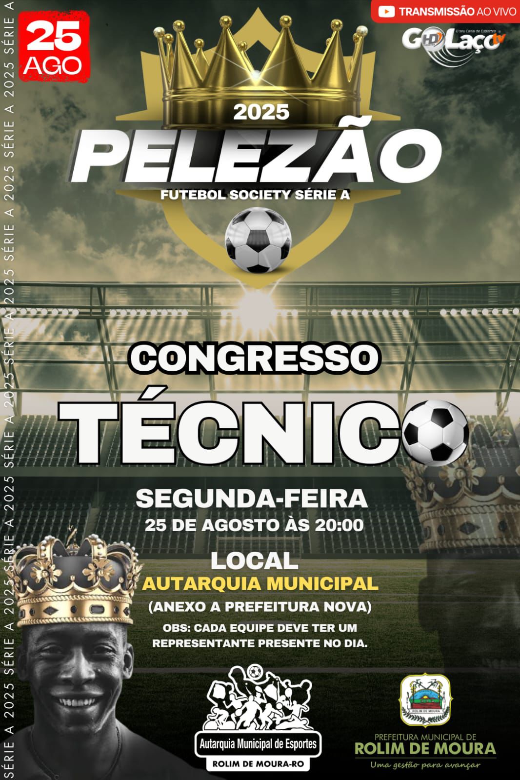 AMEROLIM Futebol: Congresso técnico do Pelezão será no dia 25 imprensa Rolim de Moura 21 de agosto de 202521 de agosto de 2025 0 Comments