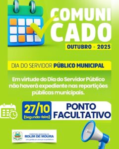 SEMACOL Dia do servidor público será comemorado no dia 27 imprensa Rolim de Moura 23 de outubro de 202523 de outubro de 2025 0 Comments
