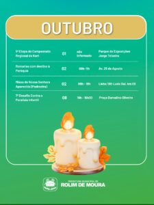 | 20 | 15h | 23h | 2ª Etapa do Campeonato Regional de Kart | Pista de Kart – Av. 25 de agosto – Centro | NI | Associação dos Kartistas de Rolim de Moura – RM KART |